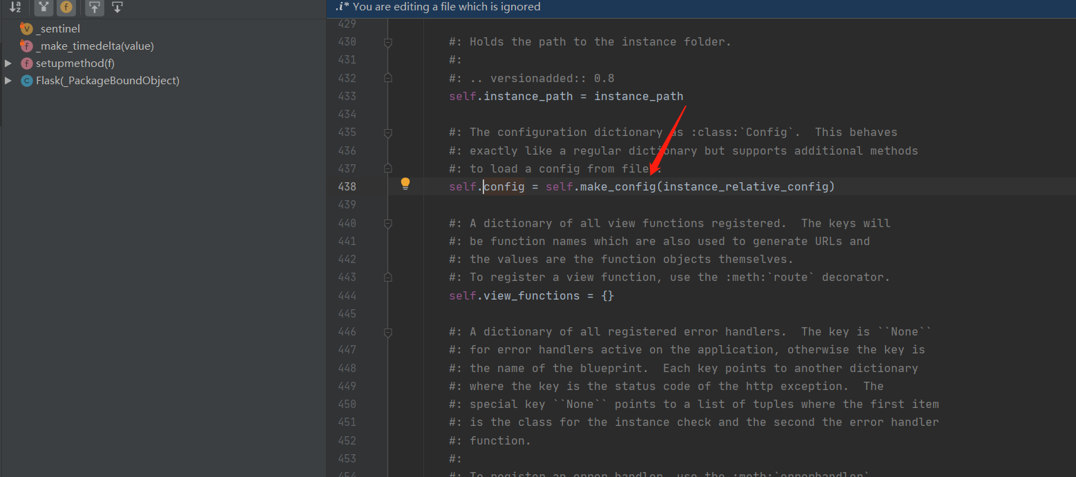 这里暂停一下看 instance_relative,这个为true的话,会把 instance_path也就是你的Flask对象的路径,传给config_class类,毕竟如果你要从配置文件加载配置,我得知道文件路径在哪里,flask允许你根据Flask实例的相对路径来定位