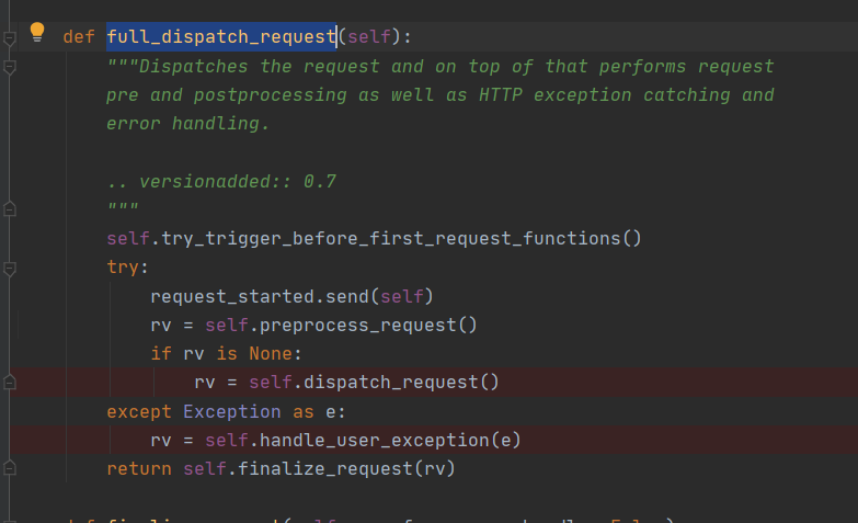 defpreprocess_request(self): bp = _request_ctx_stack.top.request.blueprint # 从字典中获取所有被@flask_app.before_request注册的函数 # 键是None的表示应用注册的,此外还有蓝图的 funcs = self.before_request_funcs.get(None, ()) if bp isnotNoneand bp in self.before_request_funcs: funcs = chain(funcs, self.before_request_funcs[bp]) # 获取所有函数遍历执行,谁return了,就直接返回到客户端,所以这里要注意 for func in funcs: rv = func() if rv isnotNone: return rv